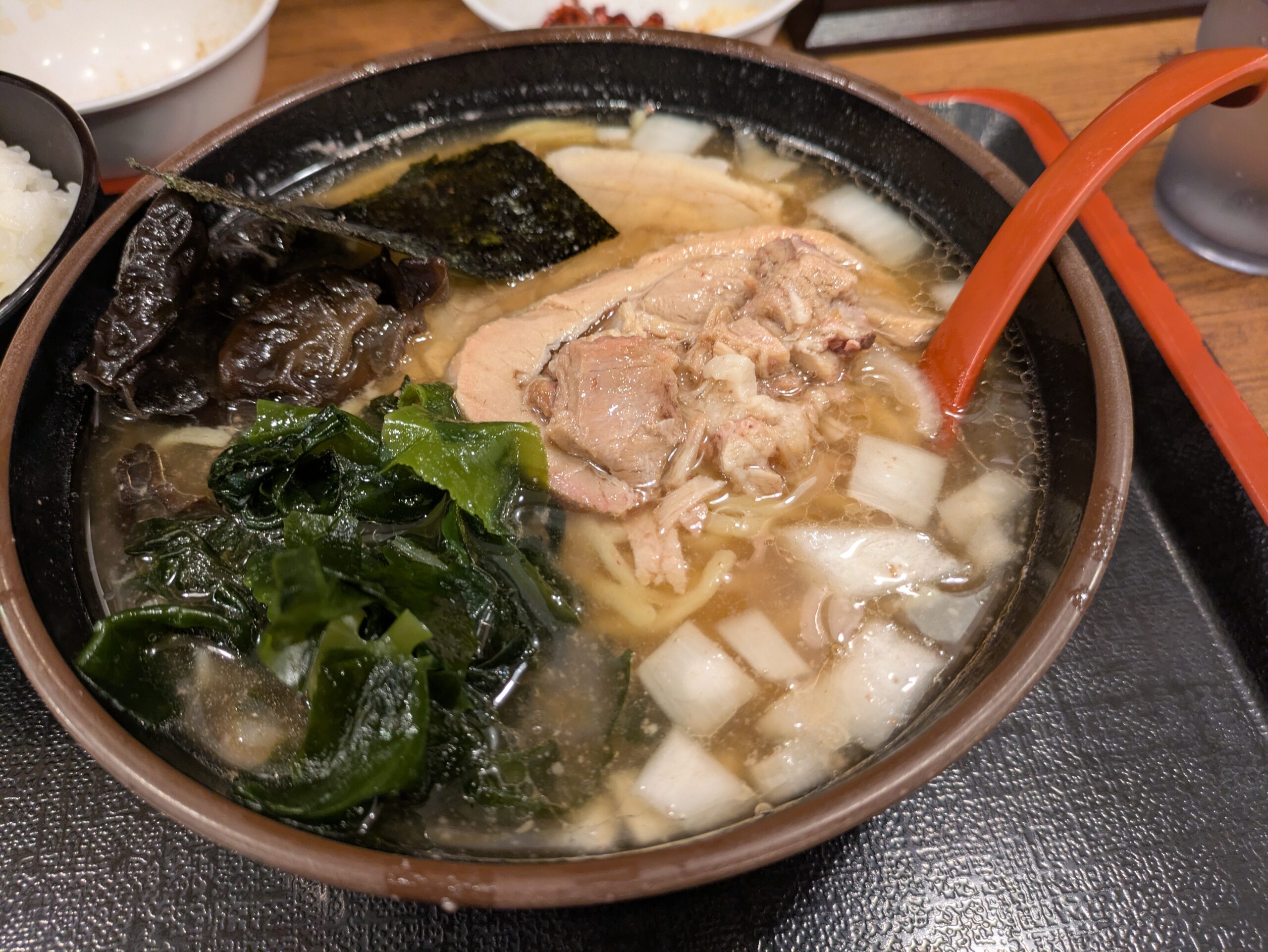 具材は、ノリ、玉ねぎ、キクラゲ、ワカメですね。