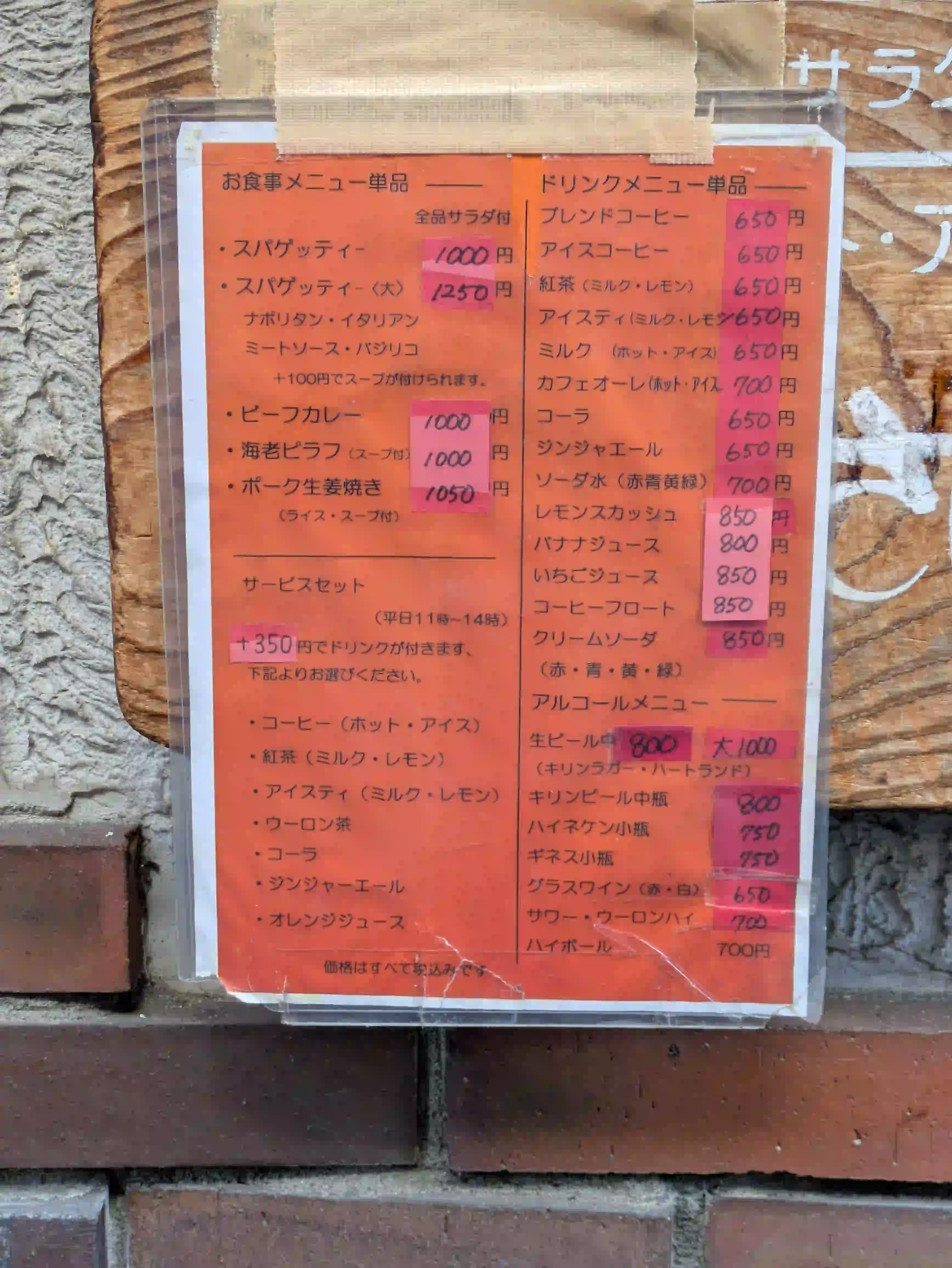本店の「さぼうる」は飲み物と軽食(ピザトースト等)が主体で、本店の隣にある「さぼうる2」は食事メニューを提供しています。