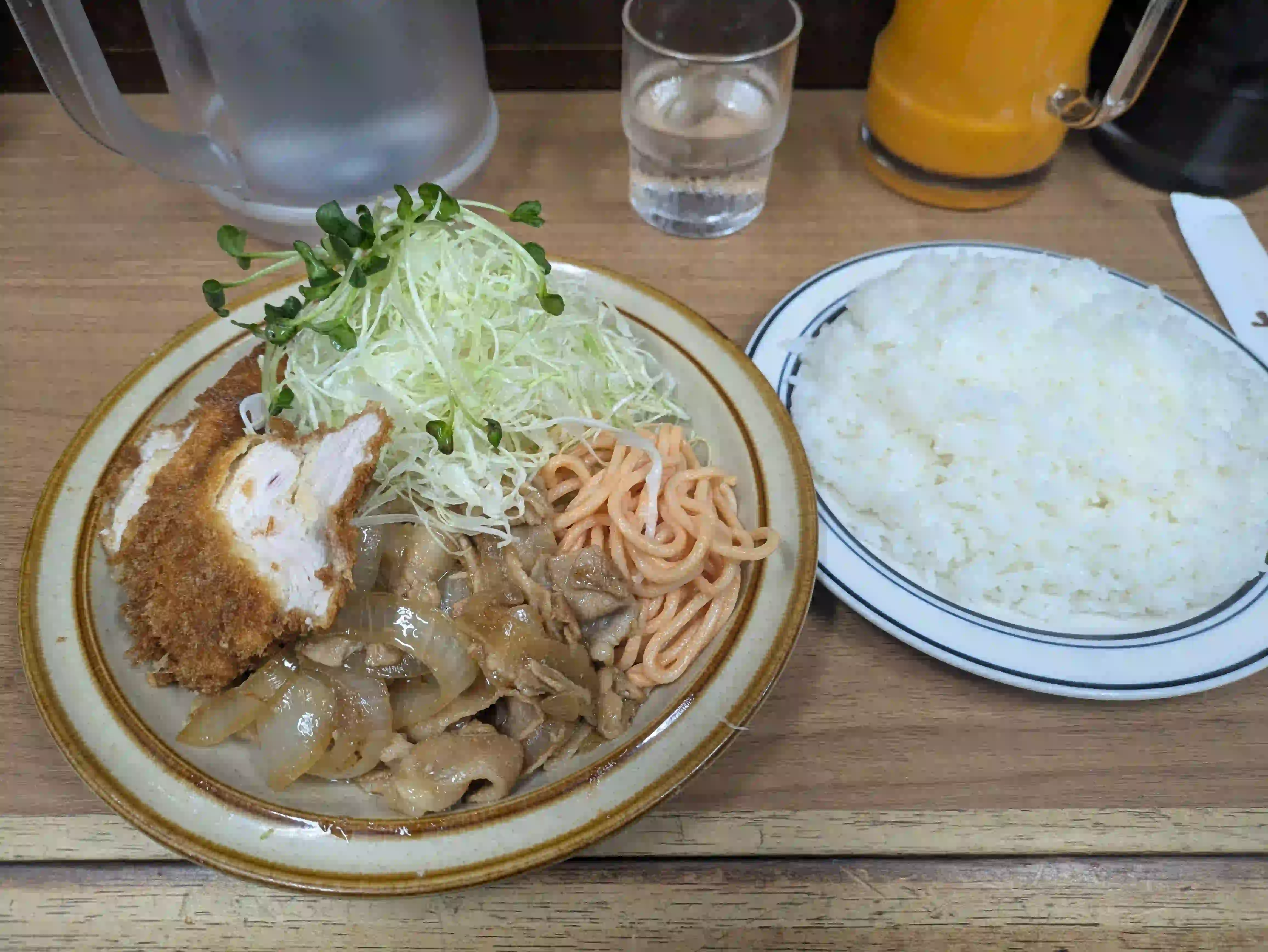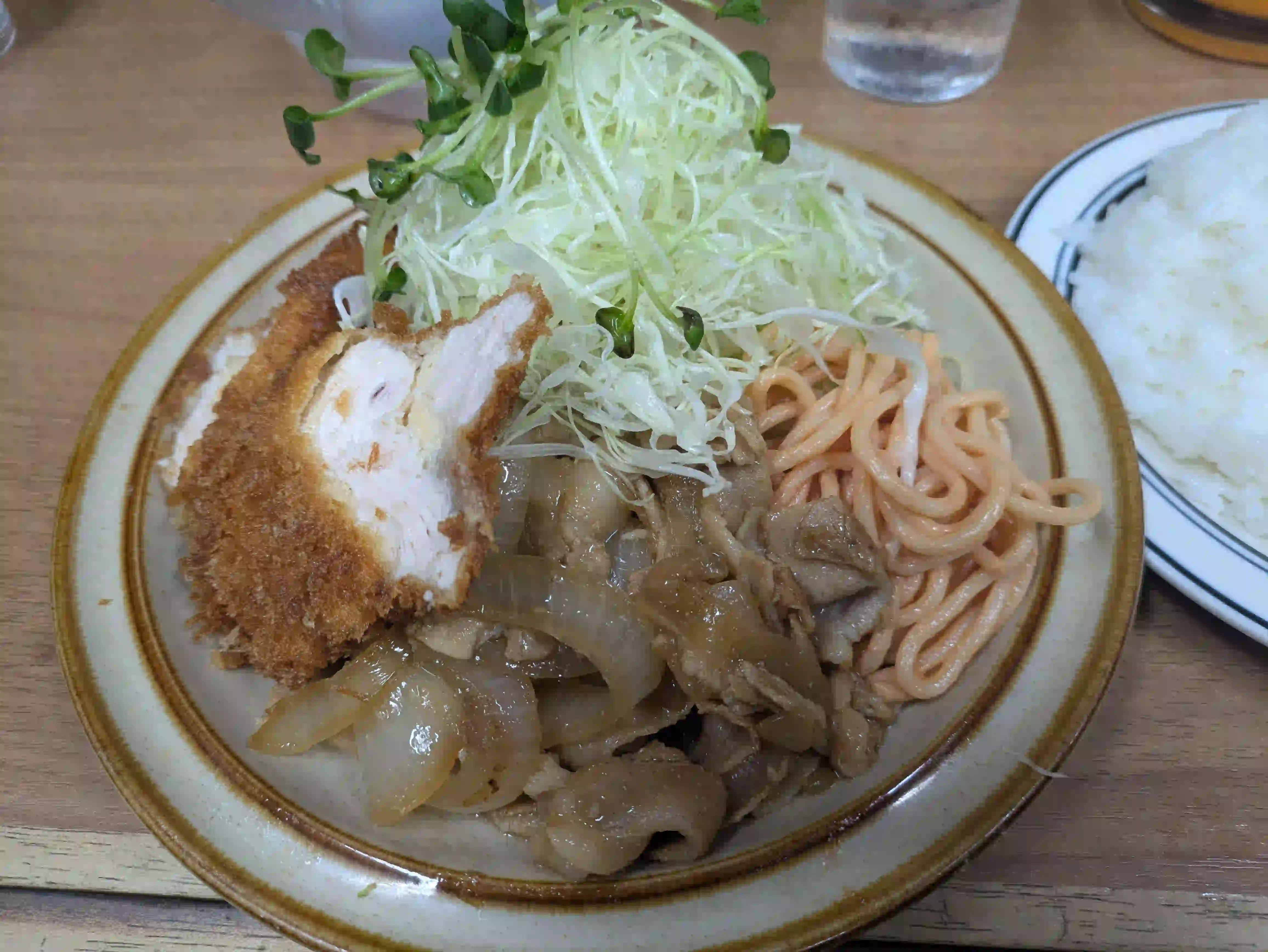 - チキンカツ+しょうが焼き(ライス付き):900円