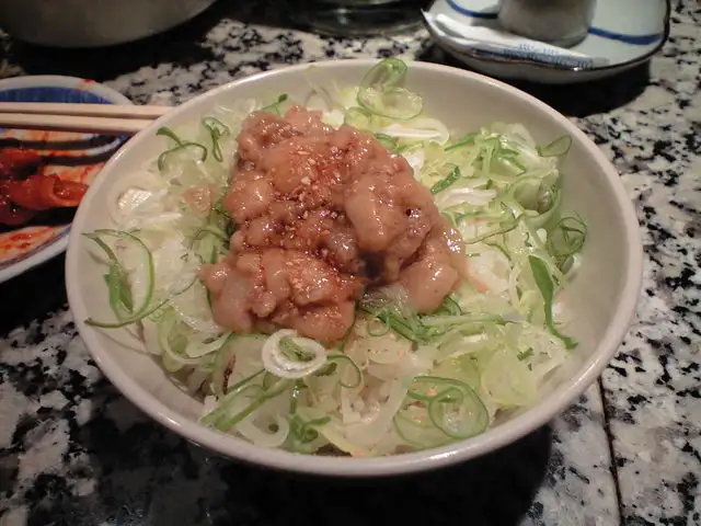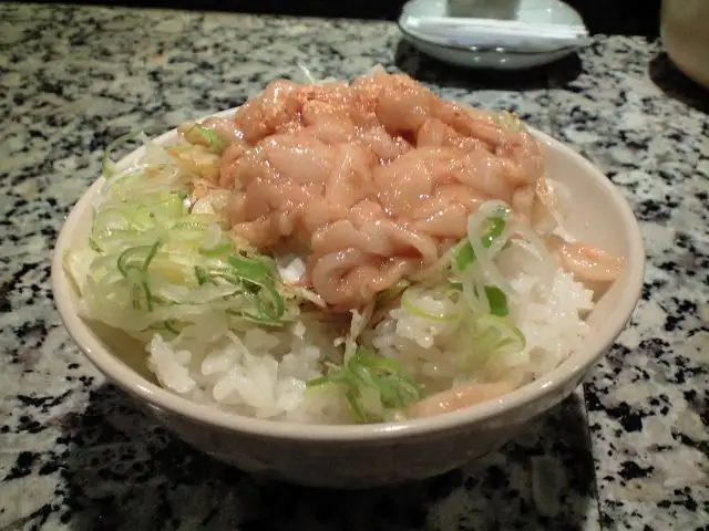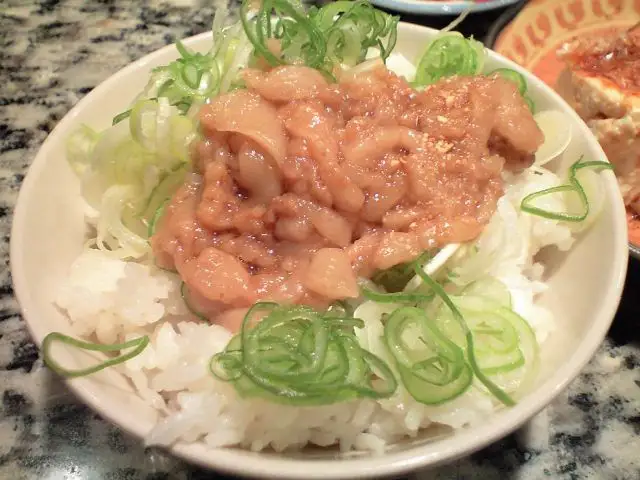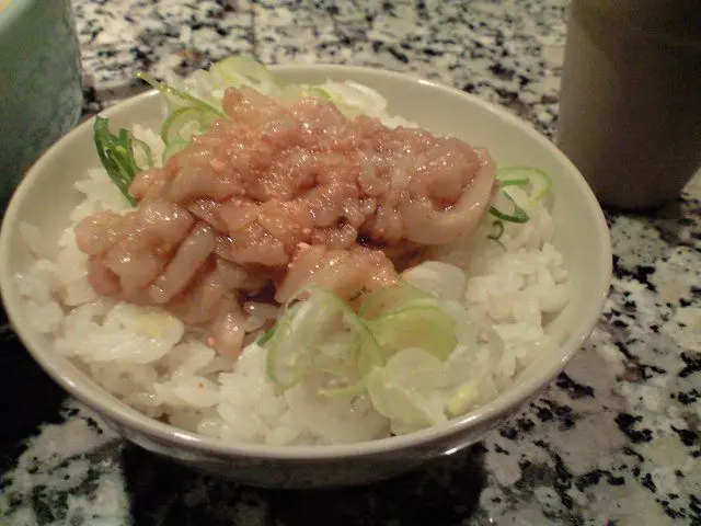 ニンニクの醤油漬けが卓上に置いてありまして、これを各メニューに振りかけると数段旨味が高まります。